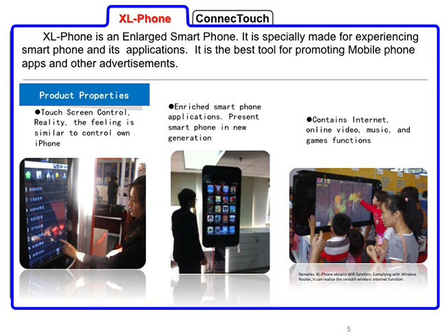 XL Phone can apply in event promotion. It has the camera function. Customers can take pic with show girl or celebrates in the event. It helps optimize the customer impression, increase the customer inflow and develop the brand image.