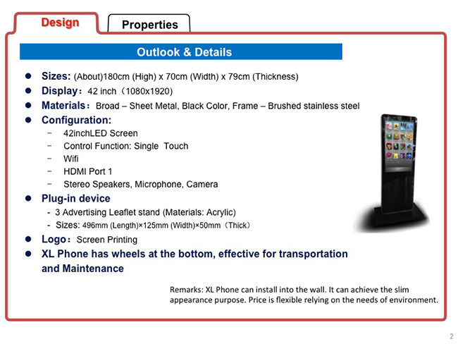 XL Phone will display the Advertisement video on screen automatically without the control of operator, in order to enhance the benefits of products and activities.