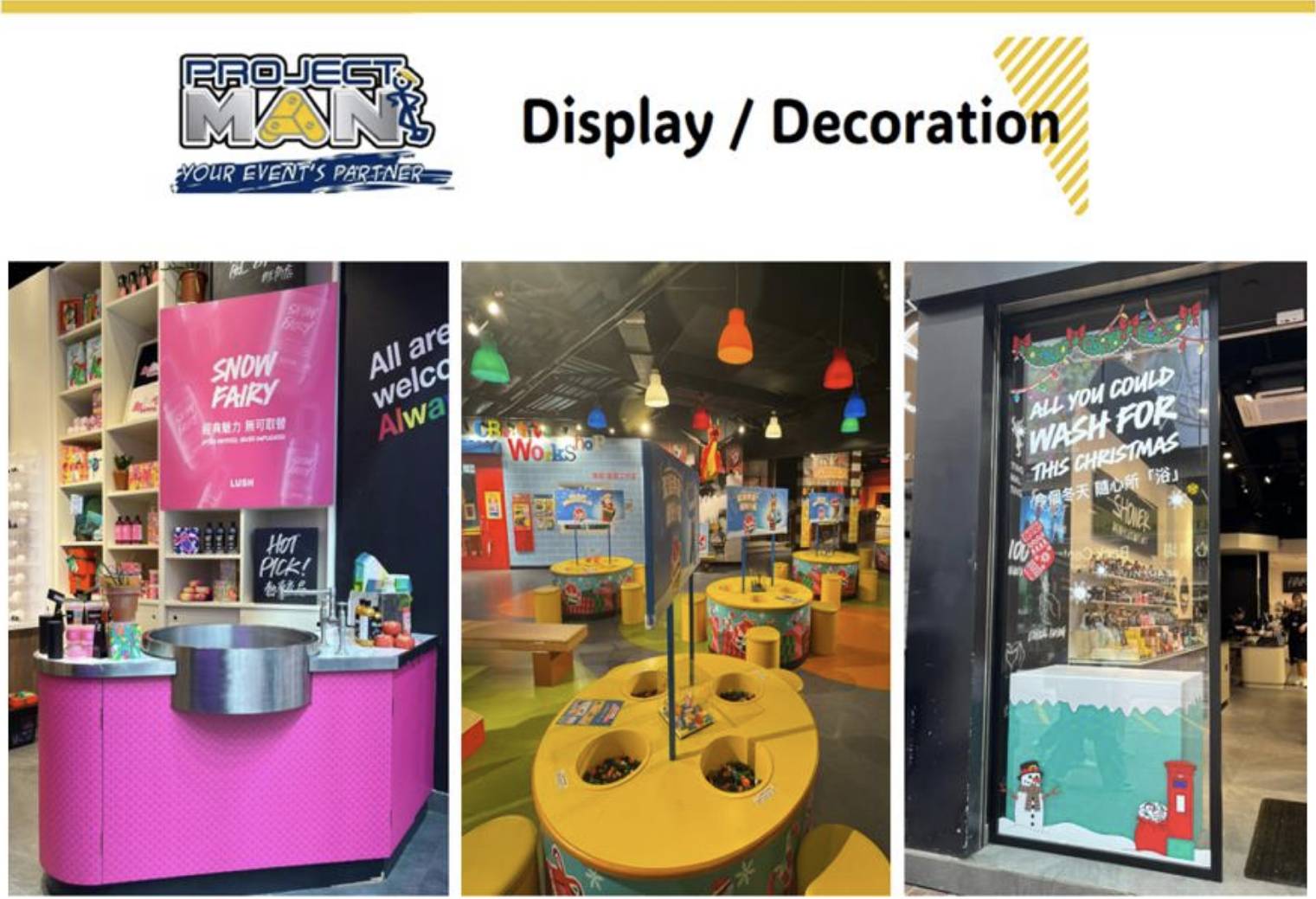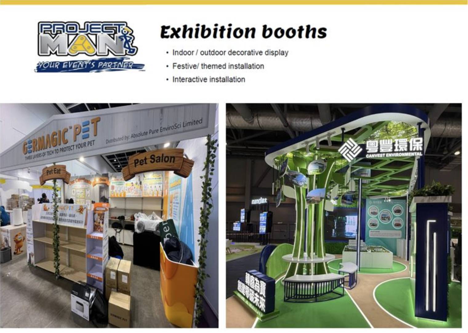 | • | Exhibition booth/Event Production | 展覽場地佈置/活動場地佈置 |